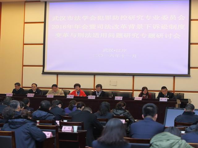 11月9日,武汉市法学会刑事法学研究会犯罪防控研究专业委员会 2016年年会暨“司法改革背景下诉讼制度变革与刑法适用问题研究”专题研讨会在江岸区人民检察院顺利召开。中国刑法研究会副会长、武汉大学法学院教授、博士生导师、武汉市法学会副会长莫洪宪,武汉市人大常委会代表工作委员会主任、武汉市法学会党组书记、副会长孙原琍,武汉市法学会副会长周玉,湖北省人民检察院研究室副主任阮志勇,武汉市人民检察院研究室主任刘国媛,武汉市江岸区委政法委副书记何朝晖等领导和嘉宾出席了会议,汉阳、青山、东西湖区检察院和江岸区法院、江岸公安分局的论文作者以及江岸区检察院全体干警共100余人参加会议。