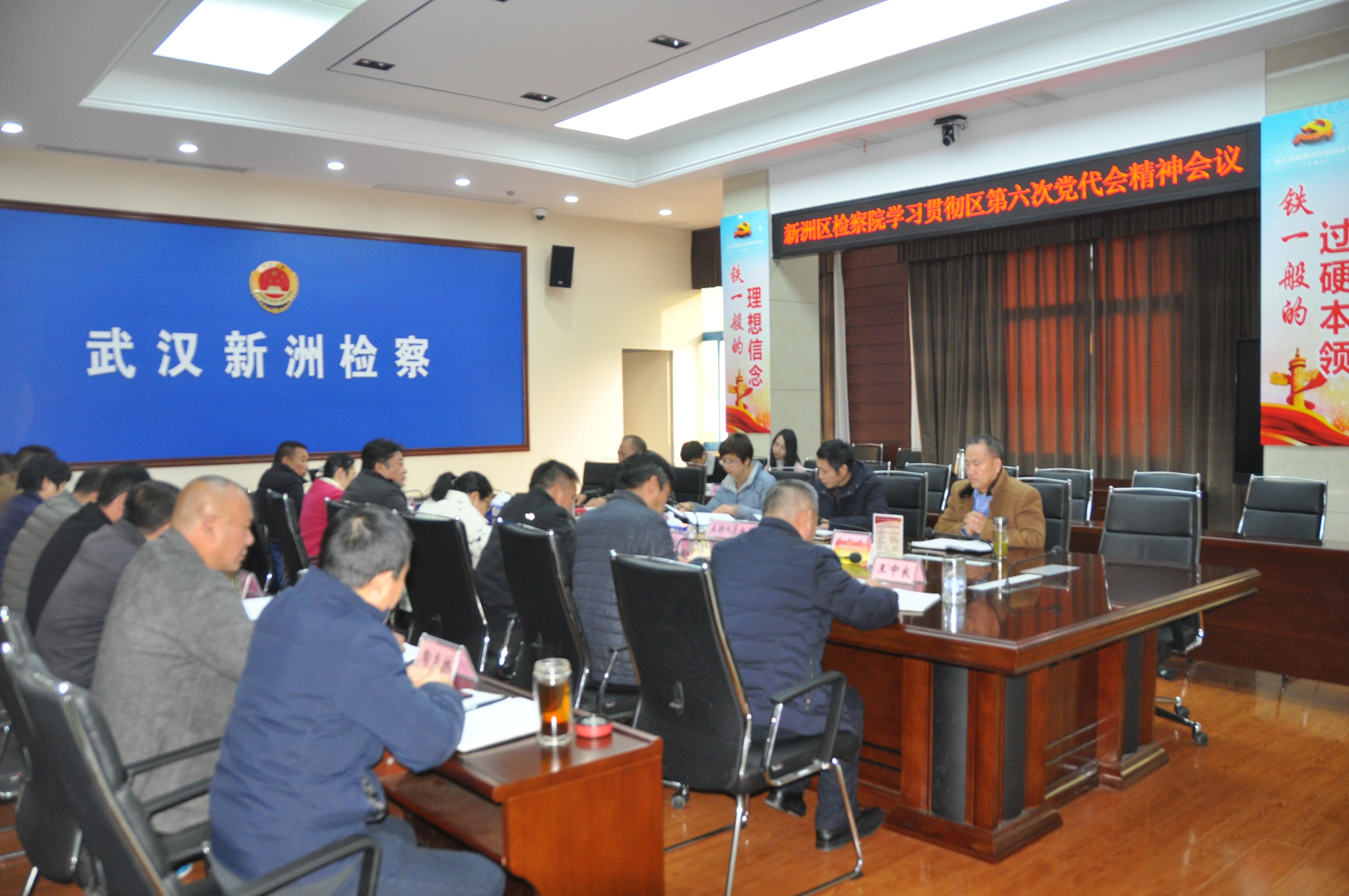 会上,院党组成员、副检察长余汉泉详细介绍了区第六次党代会的相关情况,重点传达了区委书记赵利洪代表中国共产党武汉市新洲区第五届委员会在大会上作的题为《建设“四区一高地” 做强长江新区副城 奋力谱写新时代新洲高质量发展新篇章》的报告以及区委常委、区纪委书记李国权代表中国共产党武汉市新洲区第五届纪律检查委员会所做的《扛牢政治责任 忠诚履职担当 为建设“四区一高地” 做强长江新区副城提供坚强保障》的报告。