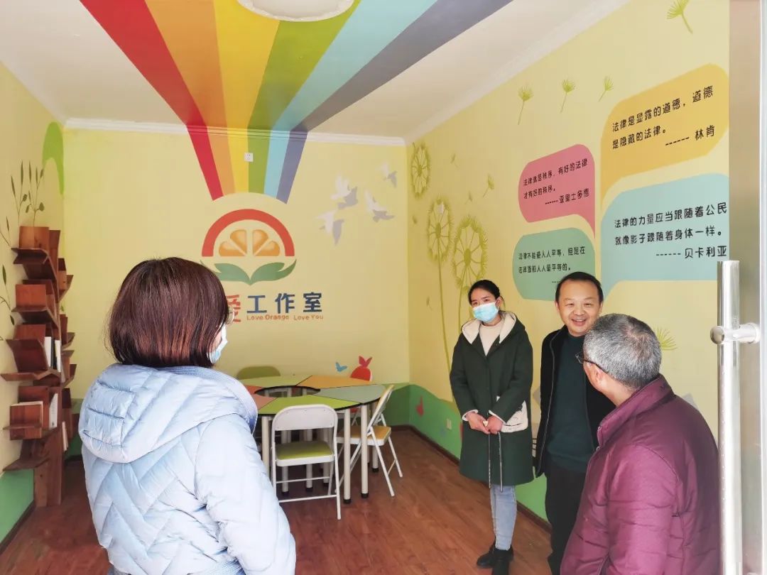 2017年秭归县检察院立足未成年人检察办案工作实际,在秭归县第二高级中学设立了“橙爱”青少年法治教育工作室,以半个橙子为原型,制定专属标识,采用手绘形式精心打造展示厅。工作室由展示厅、检察官办公室和心理辅导室三部分组成,形成由检察长担任法治副校长,分管副检察长及8名青年干警负责具体工作,专业心理辅导老师负责未成年人心理健康的志愿服务工作小组。至此,“橙爱”青少年法治教育志愿服务项目以工作室为据点,全面铺开全县青少年法治教育工作。