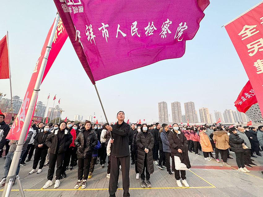 钟祥市检察院积极组织检察人员参加,随着发令枪响,参跑检察人员高举旗帜,带着朝气与活力,精神抖擞、斗志昂扬地沿着莫愁湖环线向前,尽显钟检人意气风发、朝气蓬勃、昂扬向上的精神面貌。